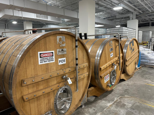 (5) Foeder Crafters of America Oak Foeder Barrels, 20 BBL w/Glycol Cooling Plates & (2) All Wood Storage Risers
