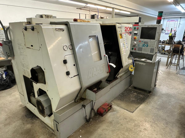 HAAS Model: SL20T, CNC Lathe, 8" Chuck, 10 Place Tool Holder, Chip Conveyor