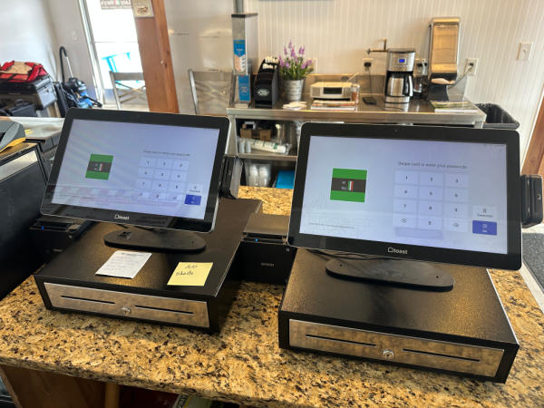 Toast POS System w/(2) Touch Screens, (4) Printers, (2) Cash Drawers, (2) CC Swipes
