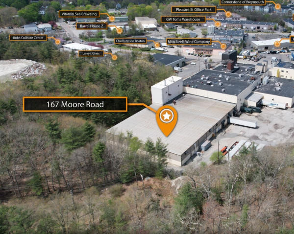 167 Moore Rd: 7.05+/-acres of land improved by a vacant 120,168+/- sf 3-story building believed to have 2500 amps @ 480V- 3 phase electric service, 102,156+/- sf warehouse, 16,134+/- sf office space, 2,142+/- sf cold storage, 13 Loading Docks,11 Exterior Dock doors, approx. 80 parking spaces, and a freight elevator. 45 Finnell Dr.: 3.63+/- acres of land improved by a vacant 50,271-building believed to have 1200 amp @ 480/377V 3 phase electrical service, 7 loading docks, 1 drive in with 24' height clearance, a wet sprinkler system and appr. 25 parking spaces.